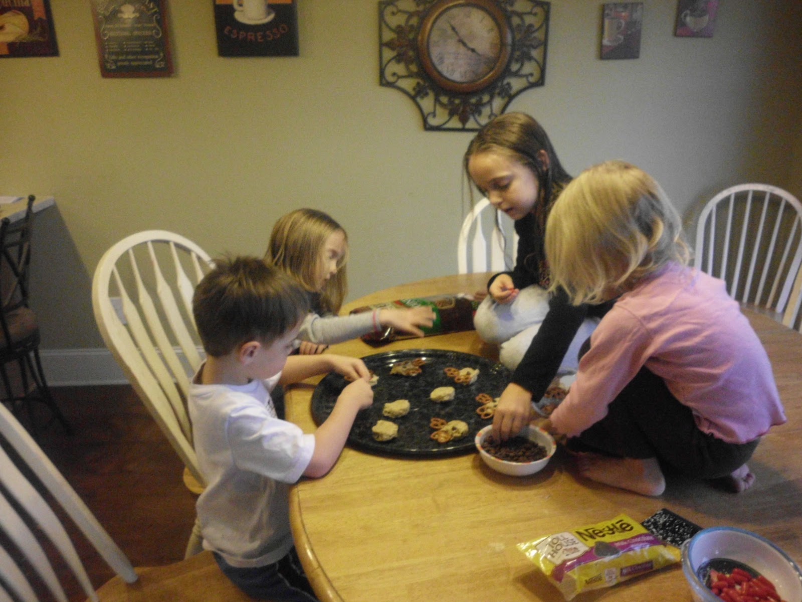 A dear friend, Bev, gave me a very simple recipe for making Rudolph Cookies. They are so cute and the kids loved making them.